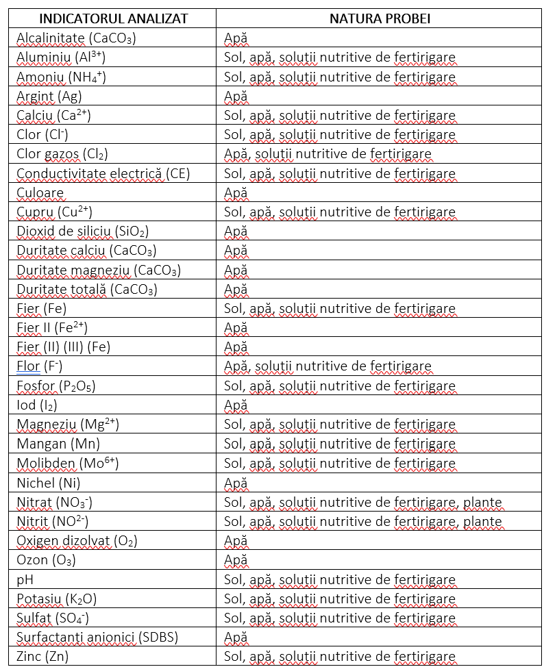 ÎNCERCĂRI AGROCHIMICE PENTRU PROBE DE SOL, PLANTE, SOLUȚII NUTRITIVE ȘI APĂ CU UTILIZARE ÎN PRODUCȚIA VEGETALĂ ȘI PISCICULTURĂ